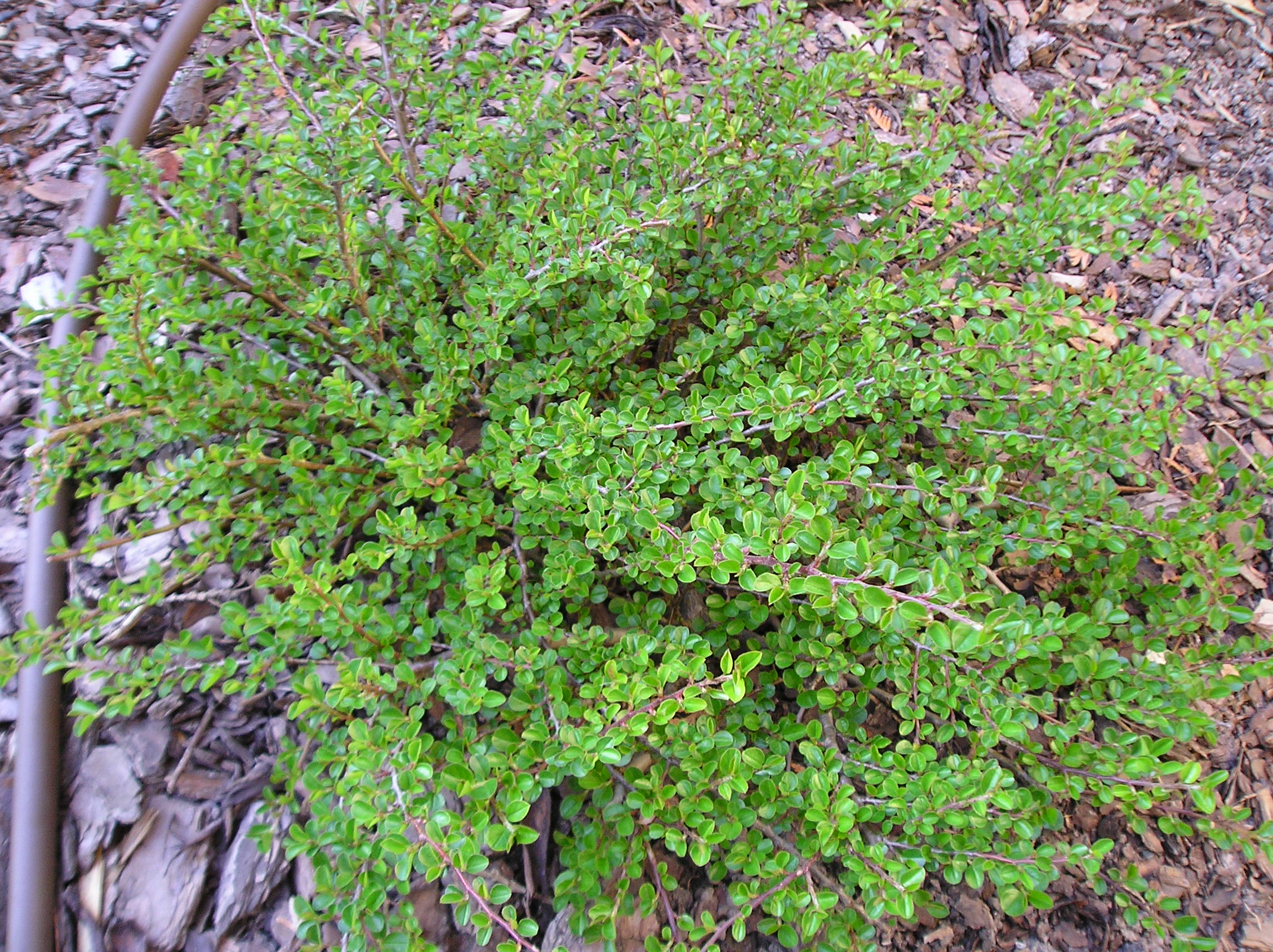 Irga położona (Cotoneaster adpressus) to niski, silnie rozrastający się krzew okrywowy o niemal poziomym pokroju, osiągający ok. 30-40 cm wysokości i znacznie większą szerokość. Sztywne, płożące pędy łatwo ukorzeniają się w kontakcie z podłożem, tworząc zwarte, stabilne dywany roślinne. Drobne, jajowate liście latem są zielone, natomiast jesienią intensywnie przebarwiają się na czerwone odcienie. Wiosną pojawiają się niewielkie, różowopurpurowe kwiaty, a pod koniec lata krzew zdobią błyszczące, pomarańczowoczerwone owoce. Najlepiej rośnie na glebach żyznych, umiarkowanie wilgotnych i przepuszczalnych, na stanowiskach słonecznych lub półcienistych. Doskonała na skarpy, zbocza, murki i jako roślina zadarniająca.