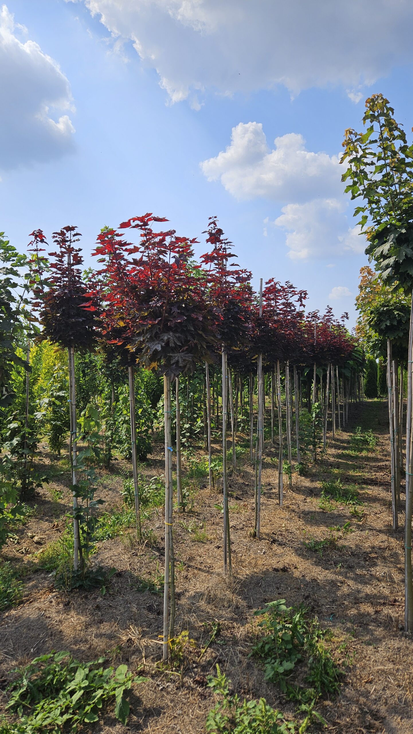 Klon pospolity ‘Purple Globe’ (Acer platanoides ‘Purple Globe’) to drzewo o o regularnej, kulistej koronie, która rośnie powoli, osiągając do 5 metrów szerokości. Liście są intensywnie purpurowe, błyszczące, dodające drzewu wyjątkowego charakteru. Preferuje stanowisko słoneczne i glebę zasobną, próchniczną, wilgotną i przepuszczalną ale toleruje też podłoże gorszej jakości, byleby nie było podmokłe.