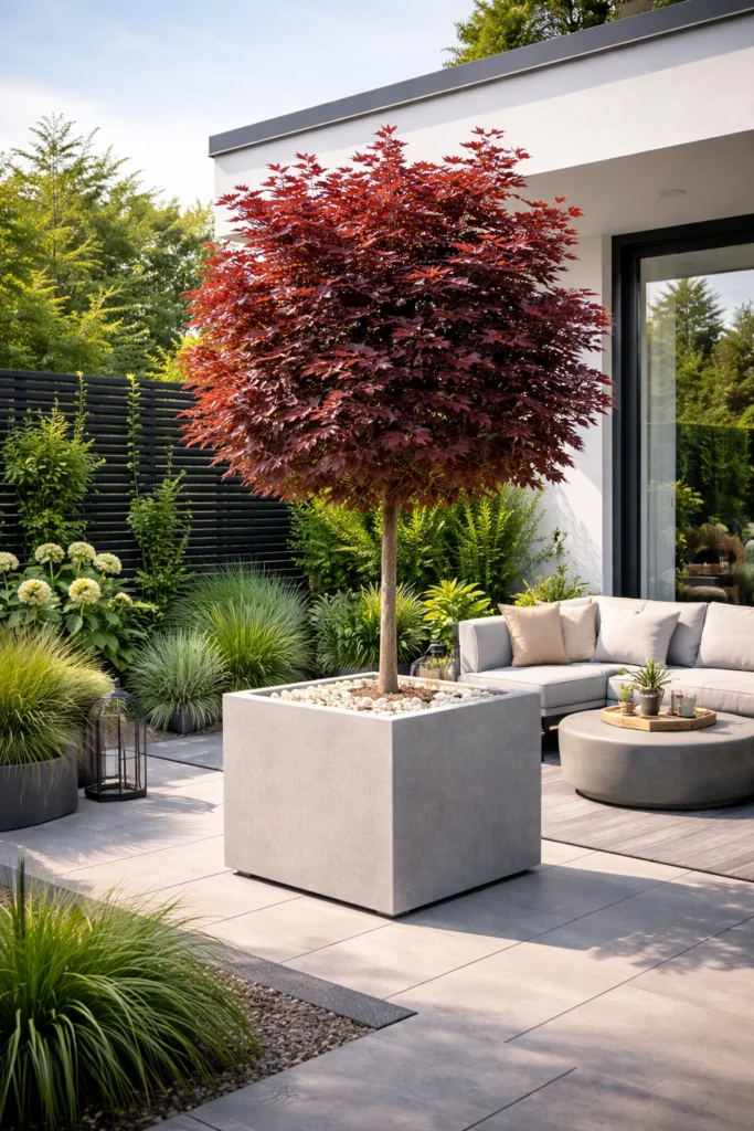 Klon pospolity ‘Purple Globe’ (Acer platanoides ‘Purple Globe’) to drzewo o o regularnej, kulistej koronie, która rośnie powoli, osiągając do 5 metrów szerokości. Liście są intensywnie purpurowe, błyszczące, dodające drzewu wyjątkowego charakteru. Preferuje stanowisko słoneczne i glebę zasobną, próchniczną, wilgotną i przepuszczalną ale toleruje też podłoże gorszej jakości, byleby nie było podmokłe.