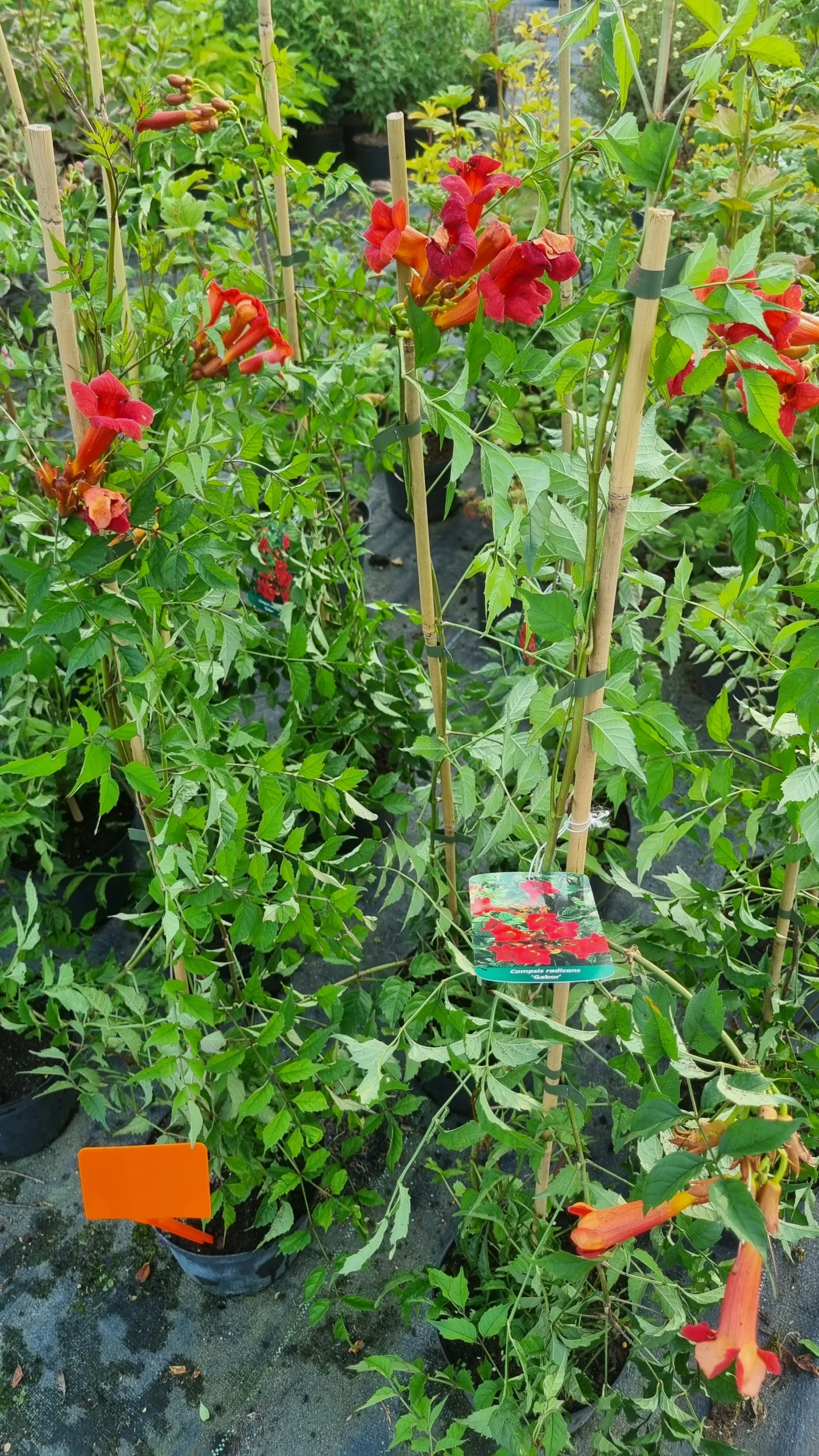 Milin amerykański ‘Gabor’ (Campsis radicans ‘Gabor’) to silnie rosnące pnącze o dużych walorach dekoracyjnych, wspinające się przy pomocy korzeni czepnych. Osiąga kilka metrów wysokości i charakteryzuje się szybkim przyrostem rocznym. Od lipca do września wytwarza efektowne, trąbkowate kwiaty w intensywnie ciemnoczerwonym kolorze, zebrane w okazałe kwiatostany na końcach tegorocznych pędów. Najlepiej rośnie na stanowiskach ciepłych, słonecznych i osłoniętych od wiatru. Preferuje gleby żyzne, przepuszczalne i umiarkowanie wilgotne, choć dobrze radzi sobie także na podłożach przeciętnych. W młodym wieku wymaga podwiązywania. Doskonale sprawdza się przy pergolach, altanach, ścianach budynków oraz solidnych podporach ogrodowych.