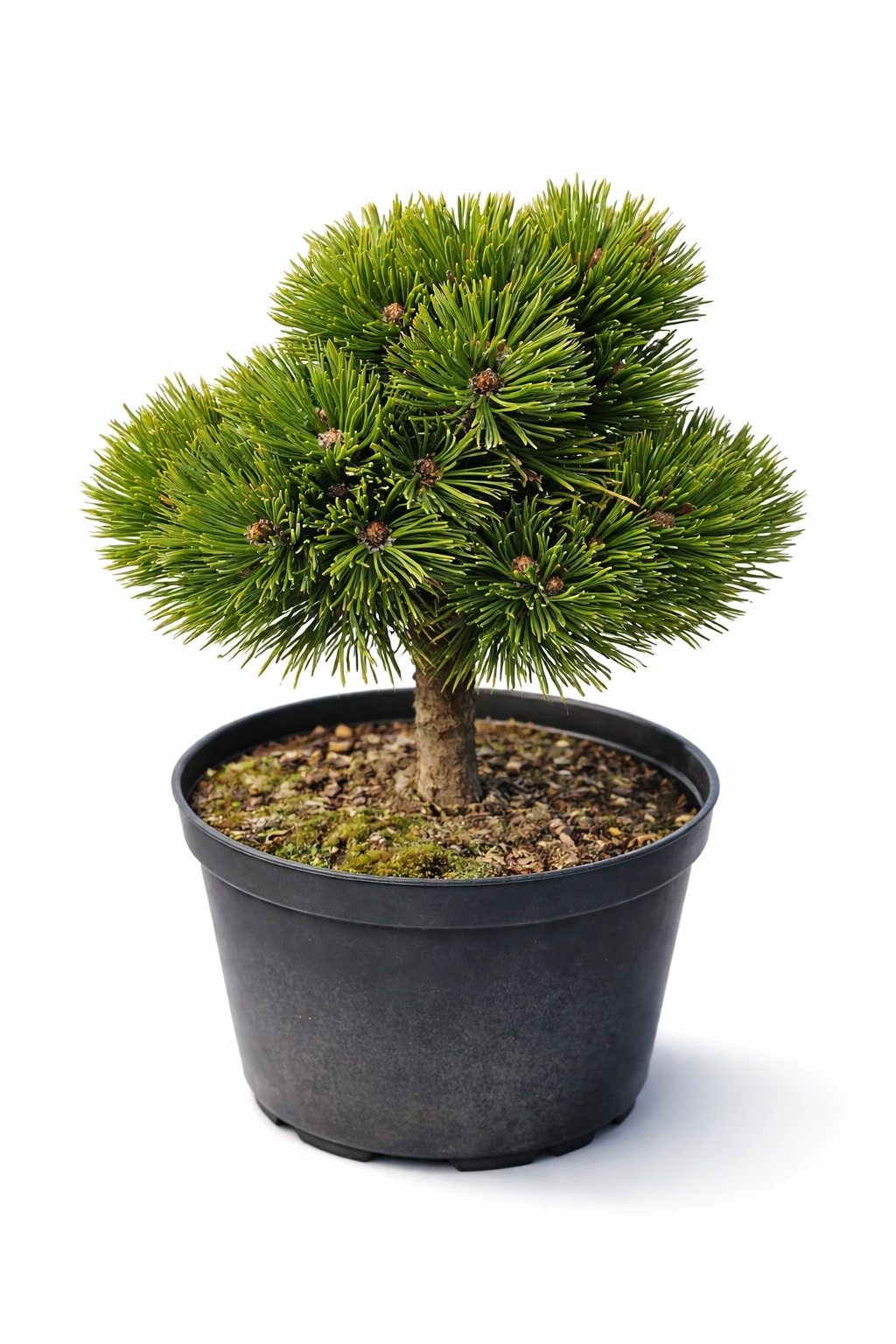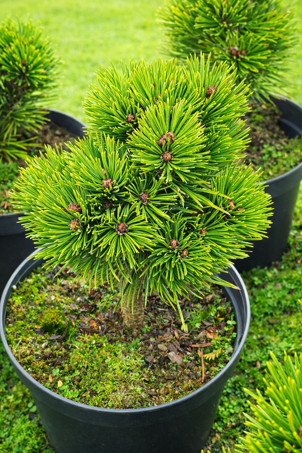 Sosna bośniacka ‘Smidtii’ (Pinus heldreichii ‘Smidtii’) to miniaturowa, niezwykle wolno rosnąca odmiana o regularnym, zwartym kulistym pokroju. Po 10 latach osiąga około 30 cm wysokości i podobną szerokość, a roczny przyrost jest minimalny, co pozwala przez długie lata zachować kompaktową formę bez konieczności cięcia. Tworzy krótkie, gęsto ułożone pędy z ciemnozielonymi, sztywnymi igłami zebranymi po dwie. Najlepiej rośnie w pełnym słońcu, w podłożu przepuszczalnym, umiarkowanie suchym, o odczynie obojętnym do lekko kwaśnego lub lekko zasadowego. Dobrze znosi suszę, mróz oraz ubogie gleby. Doskonała do ogrodów skalnych, wrzosowisk, rabat oraz uprawy w pojemnikach, także w formie szczepionej na pniu.