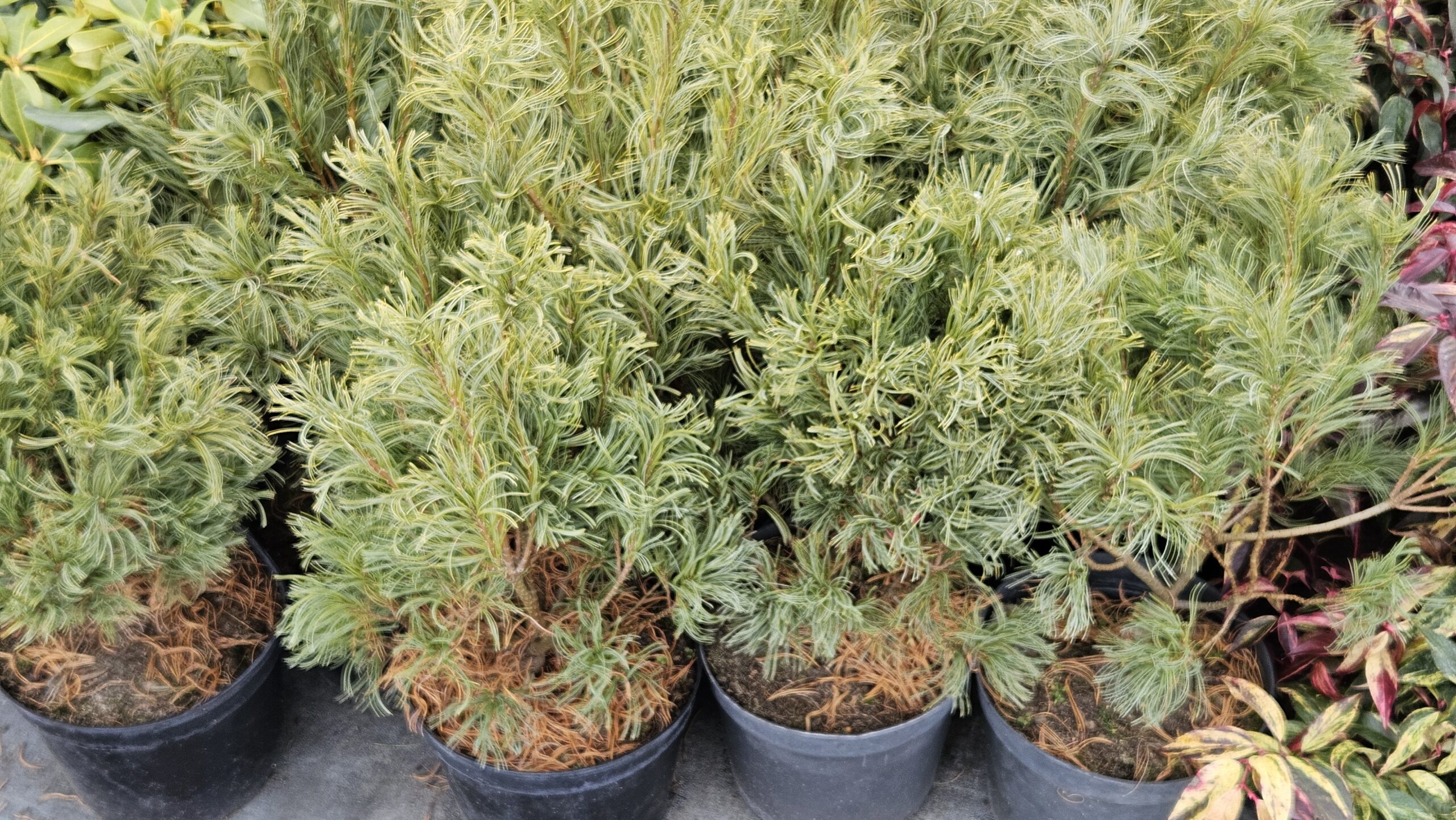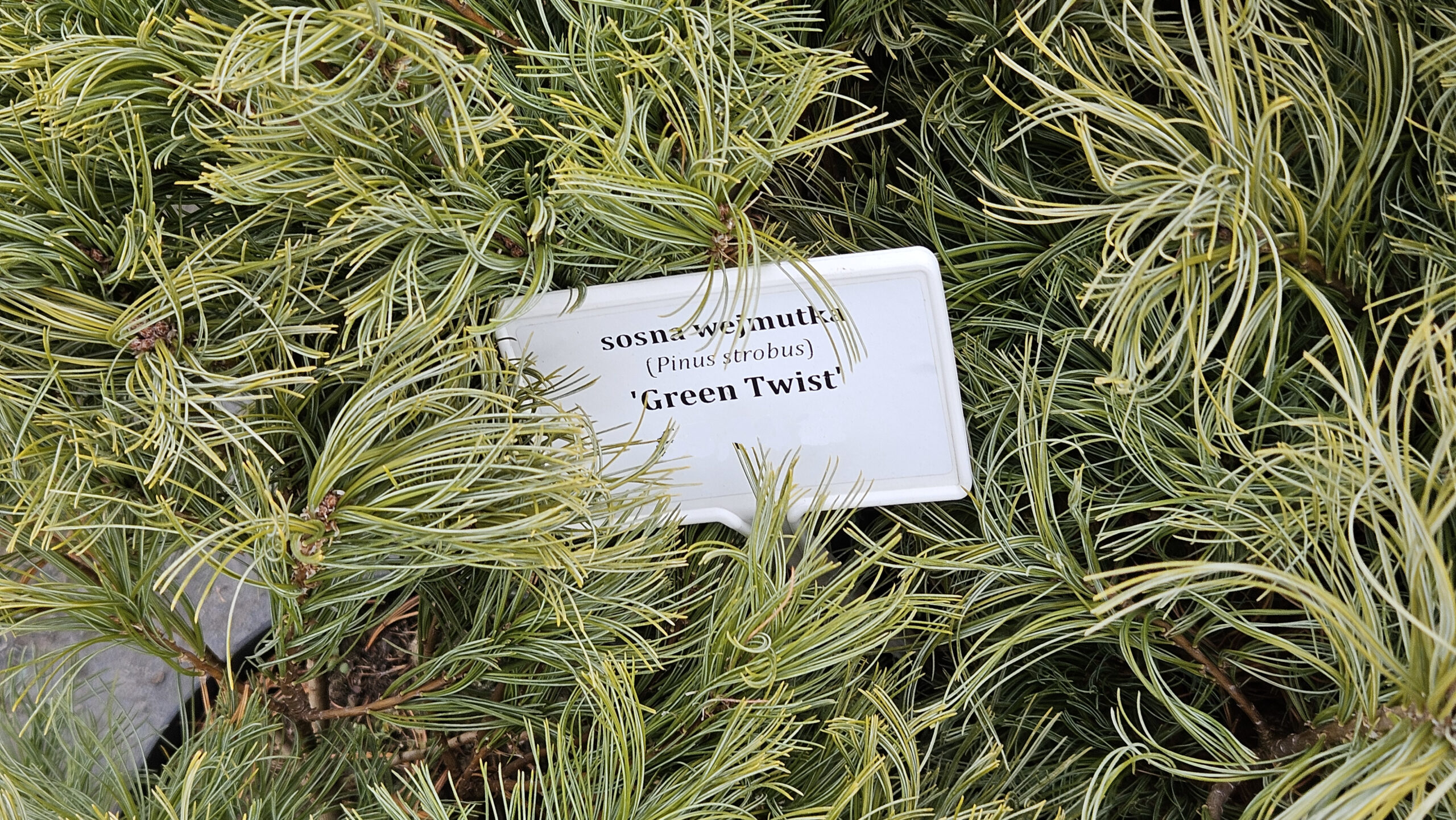 Sosna wejmutka ‘Green Twist’ (Pinus strobus ‘Green Twist’) to karłowa, wolno rosnąca odmiana o zwartym, płaskokulistym pokroju i bardzo gęstej koronie. Po 10 latach osiąga około 60 cm wysokości i podobną szerokość. Jej igły są wyraźnie poskręcane, niebieskozielone, z jaśniejszym, srebrzystym pasem od spodu, co nadaje roślinie dekoracyjny, niemal rzeźbiarski wygląd przez cały sezon. Najlepiej rośnie na glebach przeciętnych, przepuszczalnych, umiarkowanie wilgotnych, o odczynie lekko kwaśnym. Preferuje stanowiska słoneczne lub lekko półcieniste. Doskonale sprawdza się na rabatach, wrzosowiskach, w ogrodach skalnych oraz w pojemnikach.
