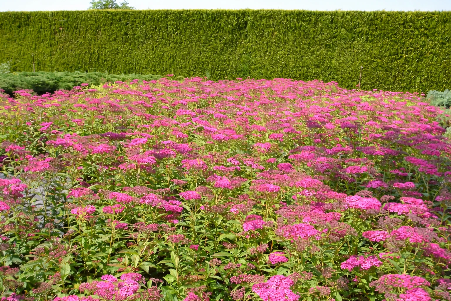 Tawuła japońska ‘Anthony Waterer’ (Spiraea japonica 'Anthony Waterer’) to silnie rosnąca odmiana o półkulistym, zwartym pokroju, dorastająca zazwyczaj do około 0,8–1 m wysokości i podobnej szerokości. Wiosną krzew zwraca uwagę młodymi, czerwonawymi liśćmi, które w trakcie sezonu zielenieją, często zachowując delikatne, kremowo-różowe przebarwienia. Od czerwca aż do lata na szczytach jednorocznych pędów pojawiają się duże, płaskie baldachogrona złożone z drobnych, intensywnie różowych kwiatów, nadających roślinie lekki, puszysty wygląd. Kwitnienie można wydłużyć poprzez usuwanie przekwitłych kwiatostanów. Odmiana najlepiej rośnie na stanowiskach słonecznych, w glebach umiarkowanie wilgotnych, przepuszczalnych i przeciętnie żyznych, ale dobrze znosi okresową suszę oraz warunki miejskie. Coroczne, niskie cięcie wiosną sprzyja zagęszczeniu krzewu i obfitemu kwitnieniu. Doskonale sprawdza się na rabatach, w niskich żywopłotach, nasadzeniach grupowych oraz jako roślina okrywowa.