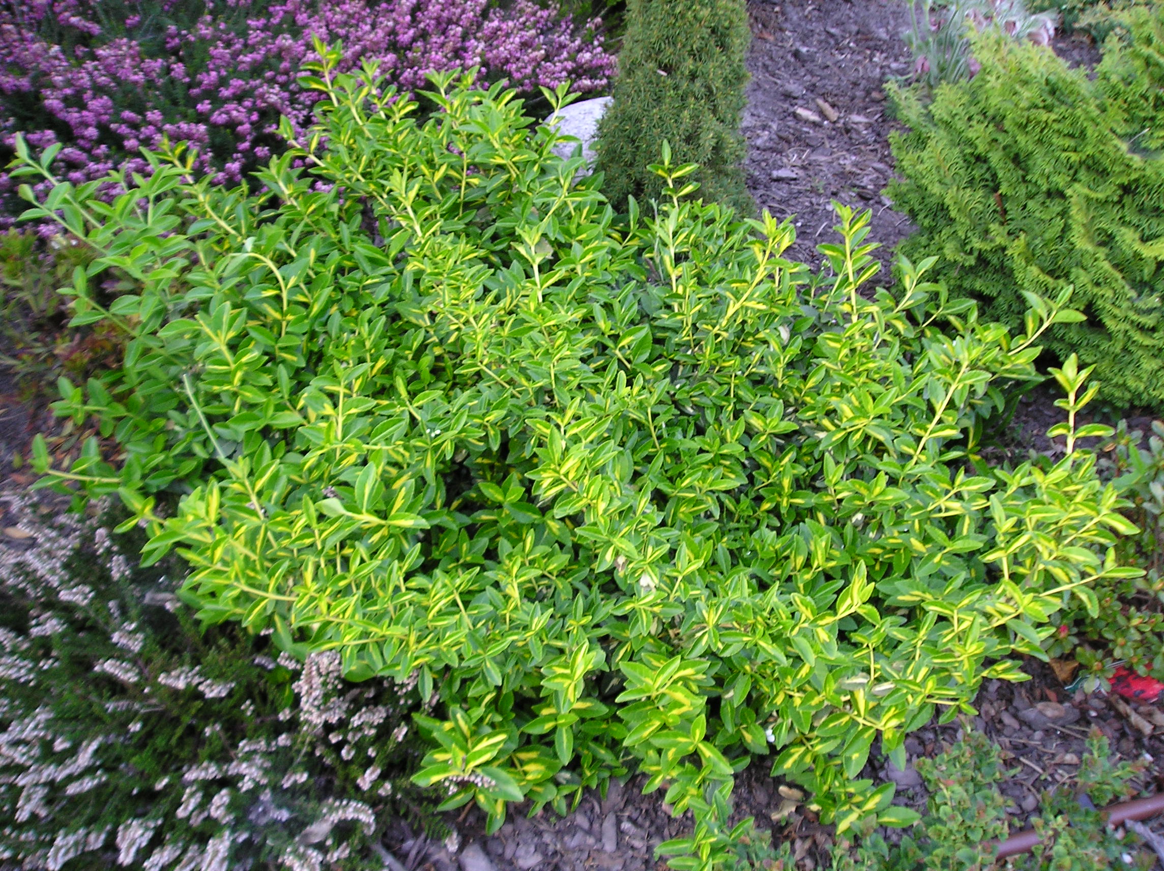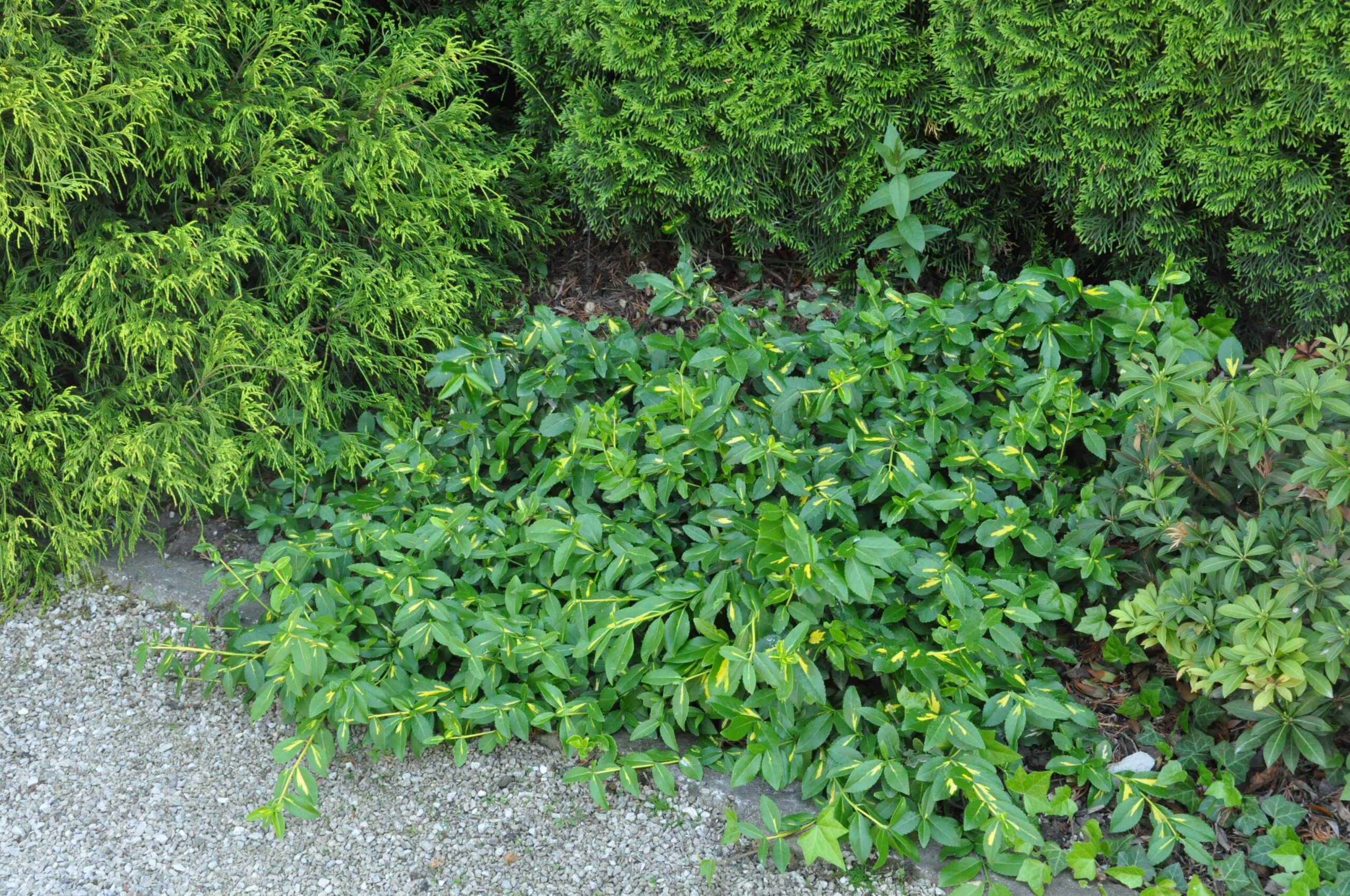 Trzmielina Fortune’a 'Sunspot’ (Euonymus fortunei 'Sunspot’) to zimozielony krzew o płożących pędach, który na otwartym terenie osiąga wysokość do około 0,6 – 0,7 m. Charakteryzuje się liśćmi o ciemnozielonym kolorze z nieregularnymi złocistymi i białymi plamami wzdłuż osi liścia. Krzew może rosnąć w cieniu, np. pod koronami drzew, ale dobrze rośnie również na słonecznych stanowiskach . Może wspinać się na drzewa, ściany, kamienie do ponad 2 m wysokości.
